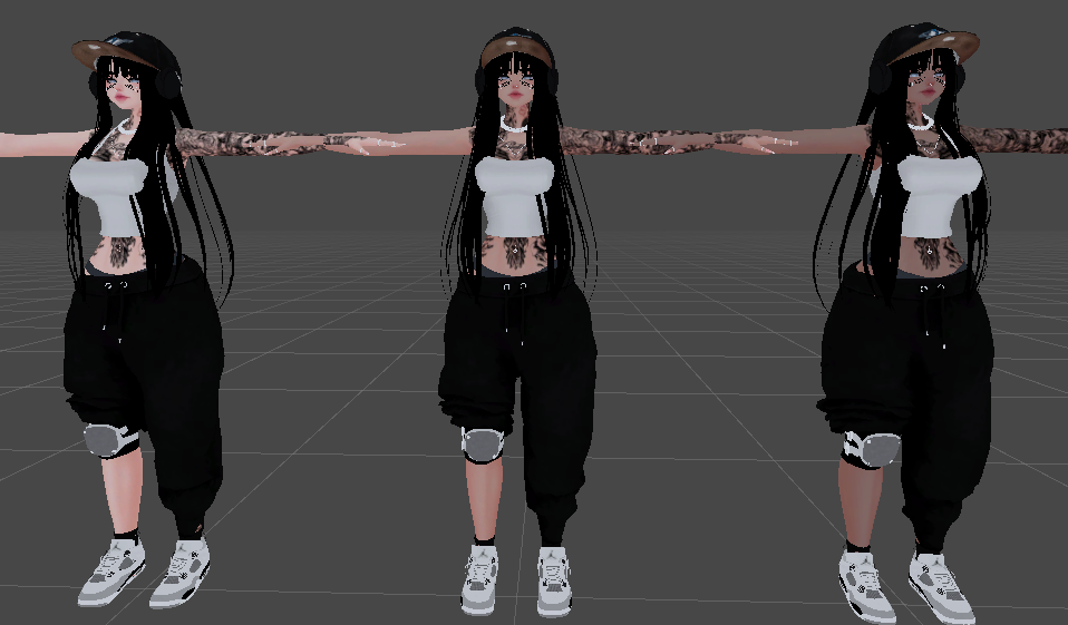 Quest Version Toggles: Belly Piercing, Bra, Chains, Socks, Long hair, Headphones, Short hair, Nose rings, Glasses, Boots, Vans, Jordan fours, Beanie, Fitted hat, Jean Shorts, Kneepad, Pants, Panties, Stitches, Top, Rings