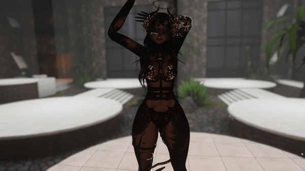 TOGGLES: Horns, Tail, Bra, Panties, Blindfold, Boots, Heels, Curly Hair, Straight Hair, Dress, Harness, Glasses, Elf Ears, Face Chain, Garter, Halo, Heart, Petals,